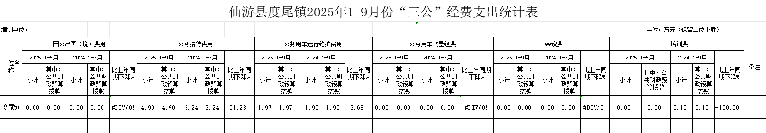 仙游县度尾镇2025年1-9月份“三公”经费支出统计表