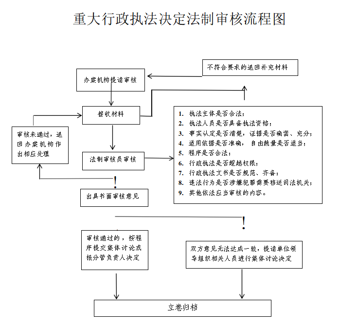 (一)对公民处以 1 万元以上的 罚款,对法人或其他组织处以 10 万元以上的罚款; (二)涉及重大公共利益、可能 造成重大社会影响或引发社会 风险; (三)经过听证程序作出行政执 法决定; (四)案情疑难复杂、涉及多个 法律关系的; (五)其他法律、法规规定应当 法制审查的重大行政执法决定。 |