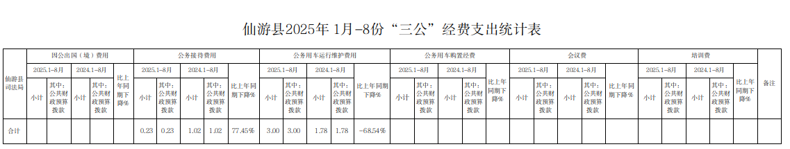 仙游县司法局2025年1-8月份“三公”经费支出情况表