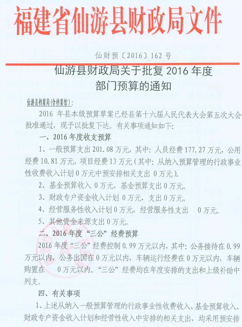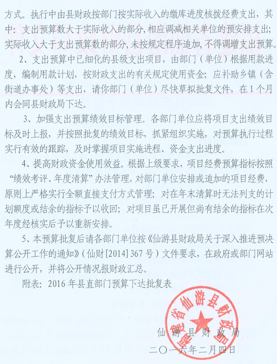 2016年部门预算经县第十六届人大第五次会议审议通过,按照《仙游县财政局关于深入推进预决算公开工作的通知》要求,现将我单位2016年部门预算说明如下: