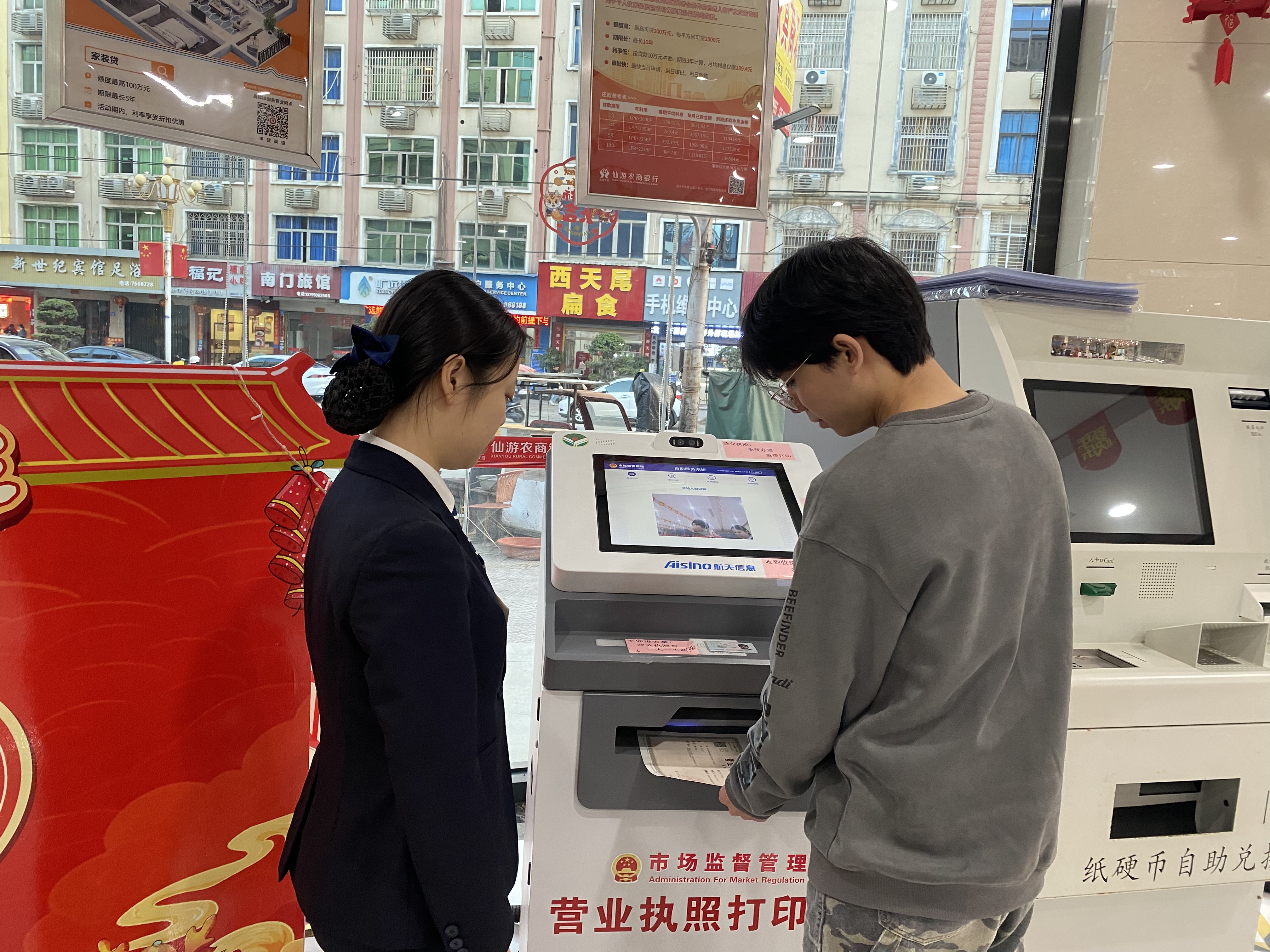 仙游农商银行党委书记、董事长陈锦林介绍,该行与仙游县市场监管局对接,去年以来,在营业部、度尾、枫亭等5个基层网点,各投用1台个体工商户自助打照机,支持个体工商户自助打印营业执照等,实现全程电子化自助服务,进一步优化营商环境。