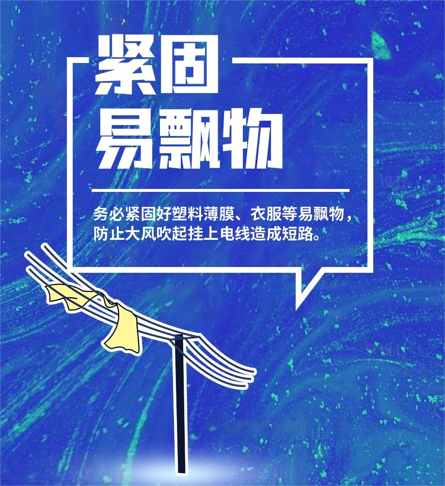 务必紧固好塑料薄膜、衣服等易飘物,防止大风吹起,挂上电线造成短路。