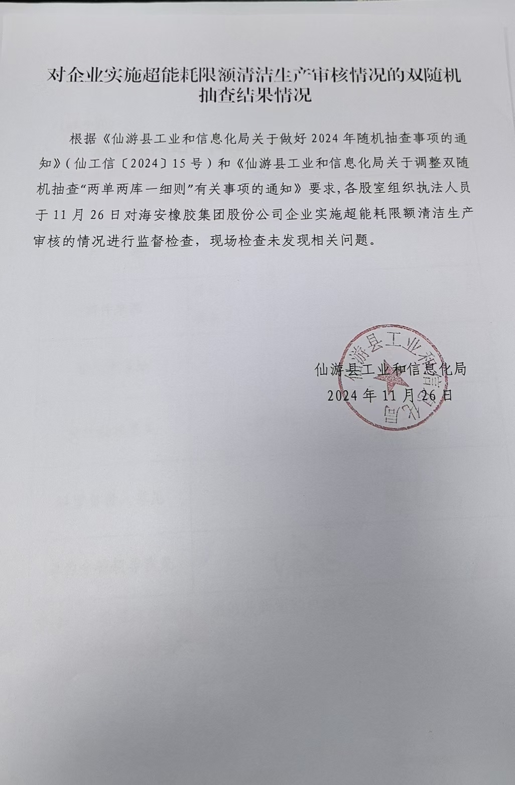对企业实施超能耗限额清洁生产审核情况的双随机抽查结果情况