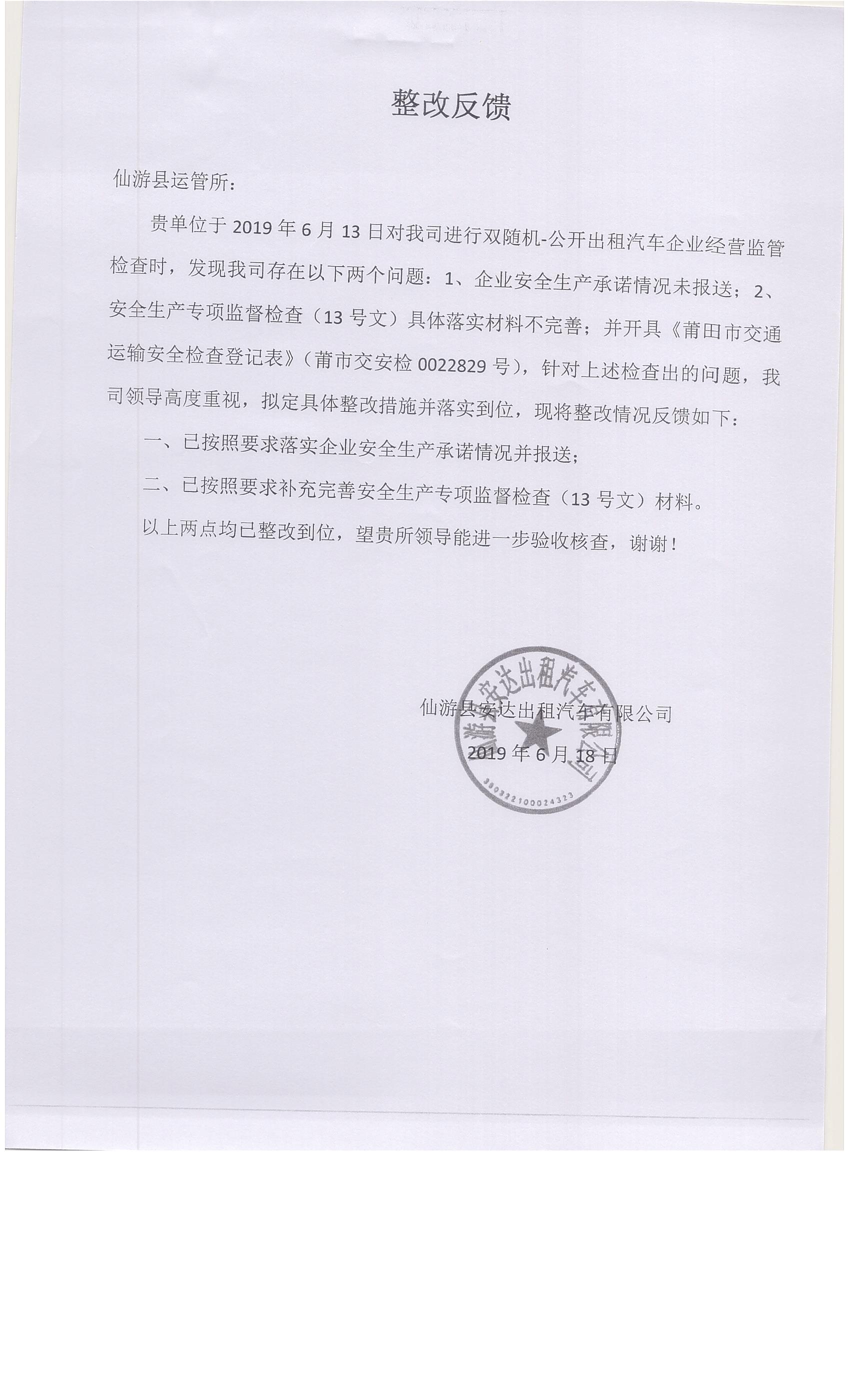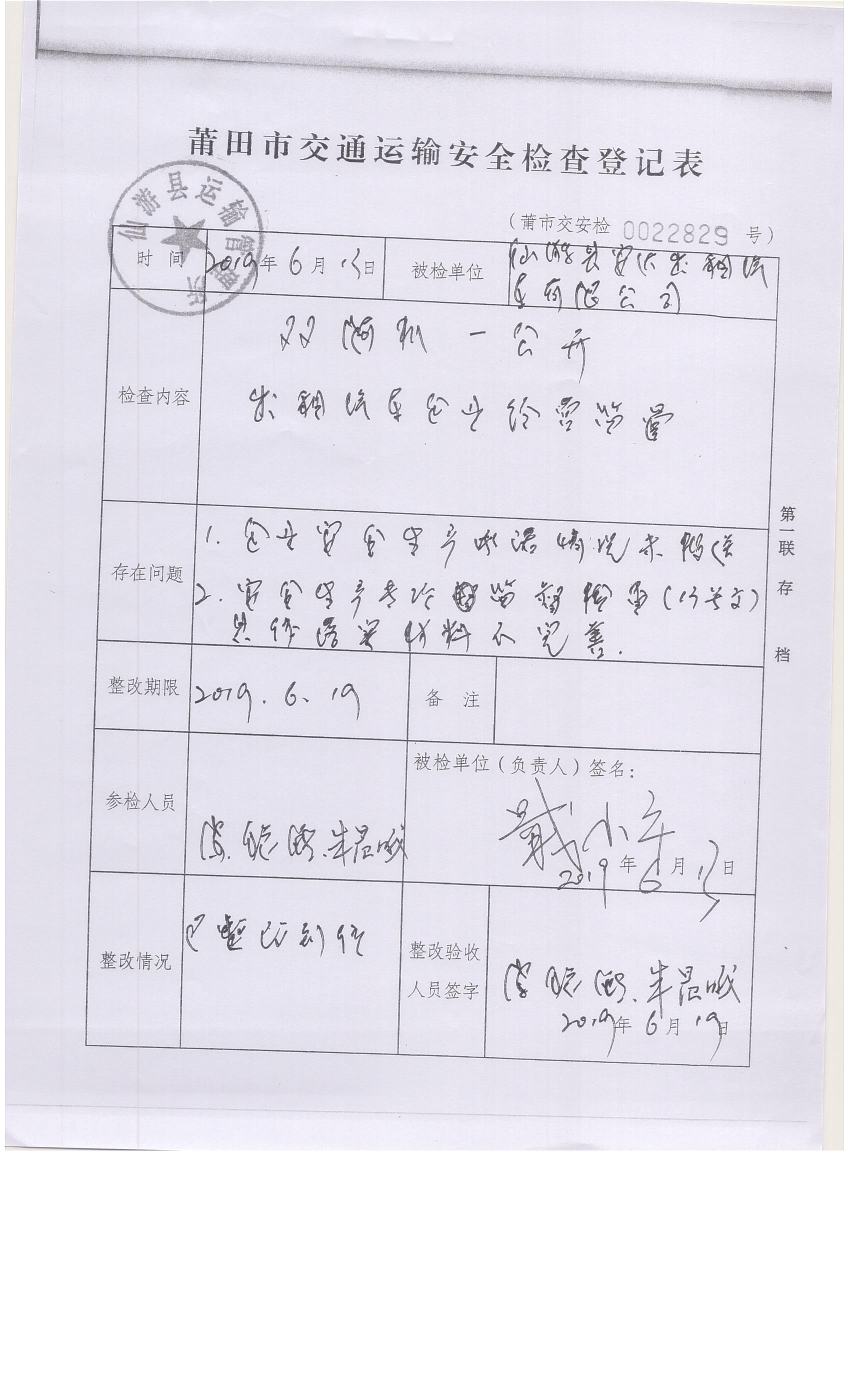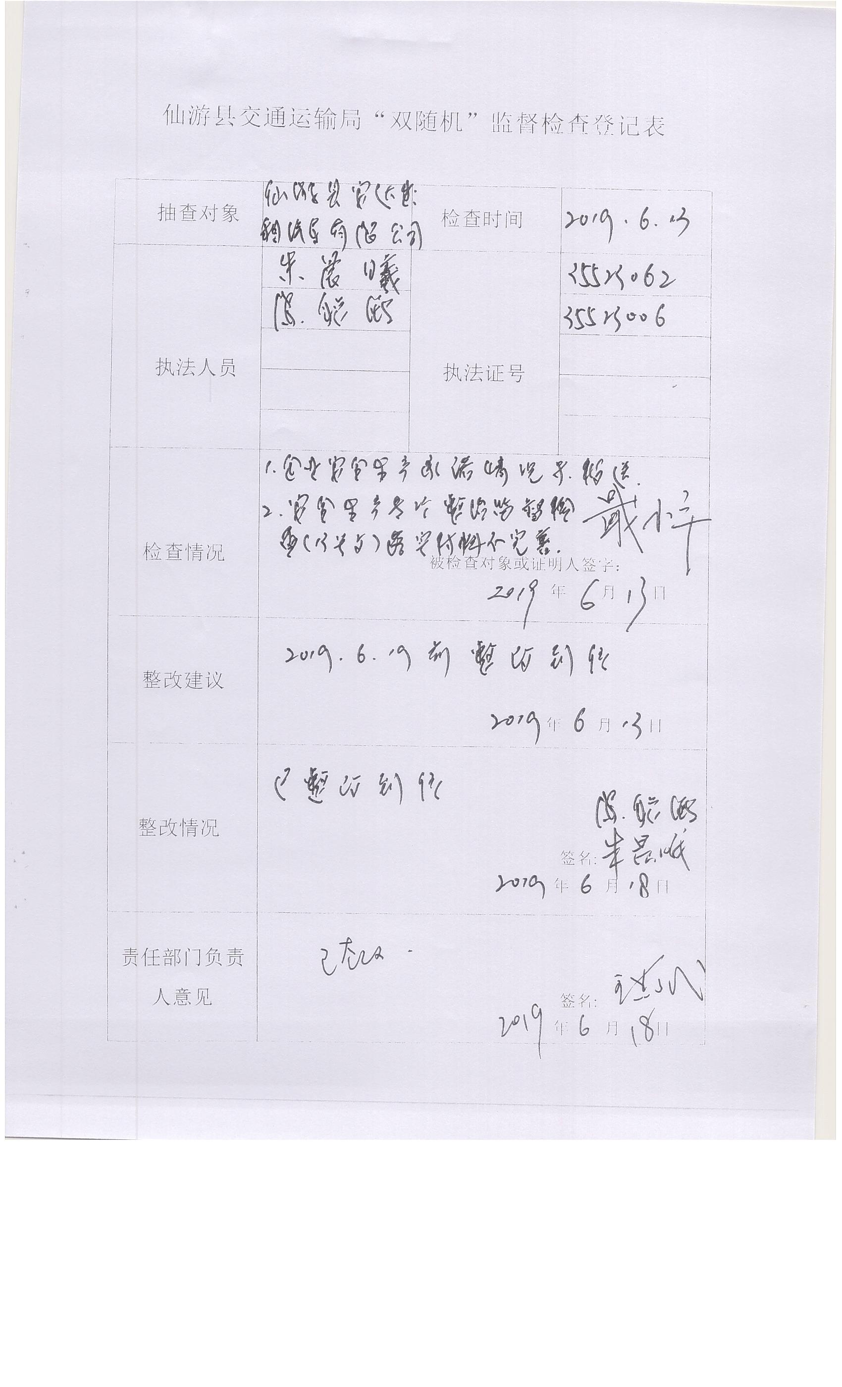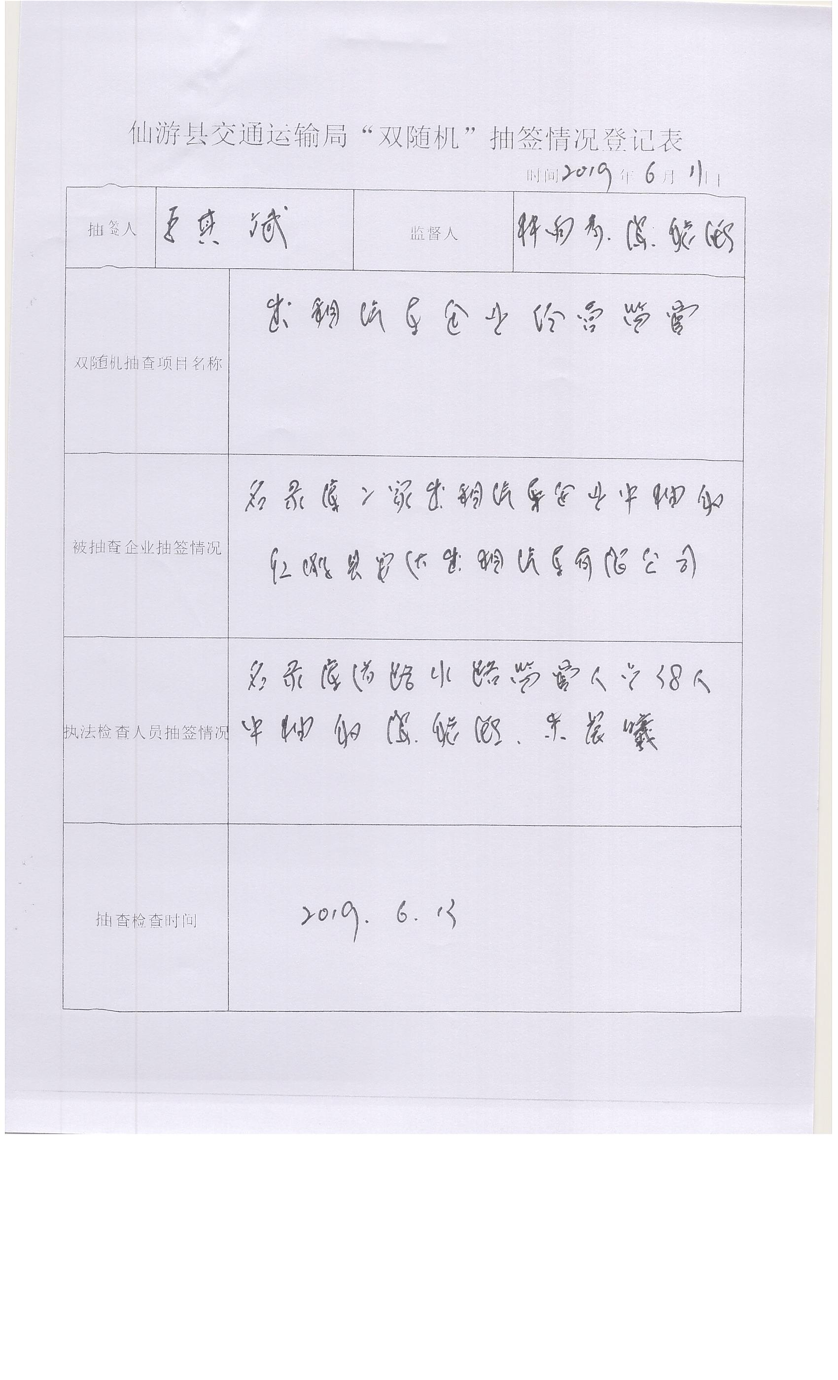 仙游县交通运输局“双随机”监督检查登记表