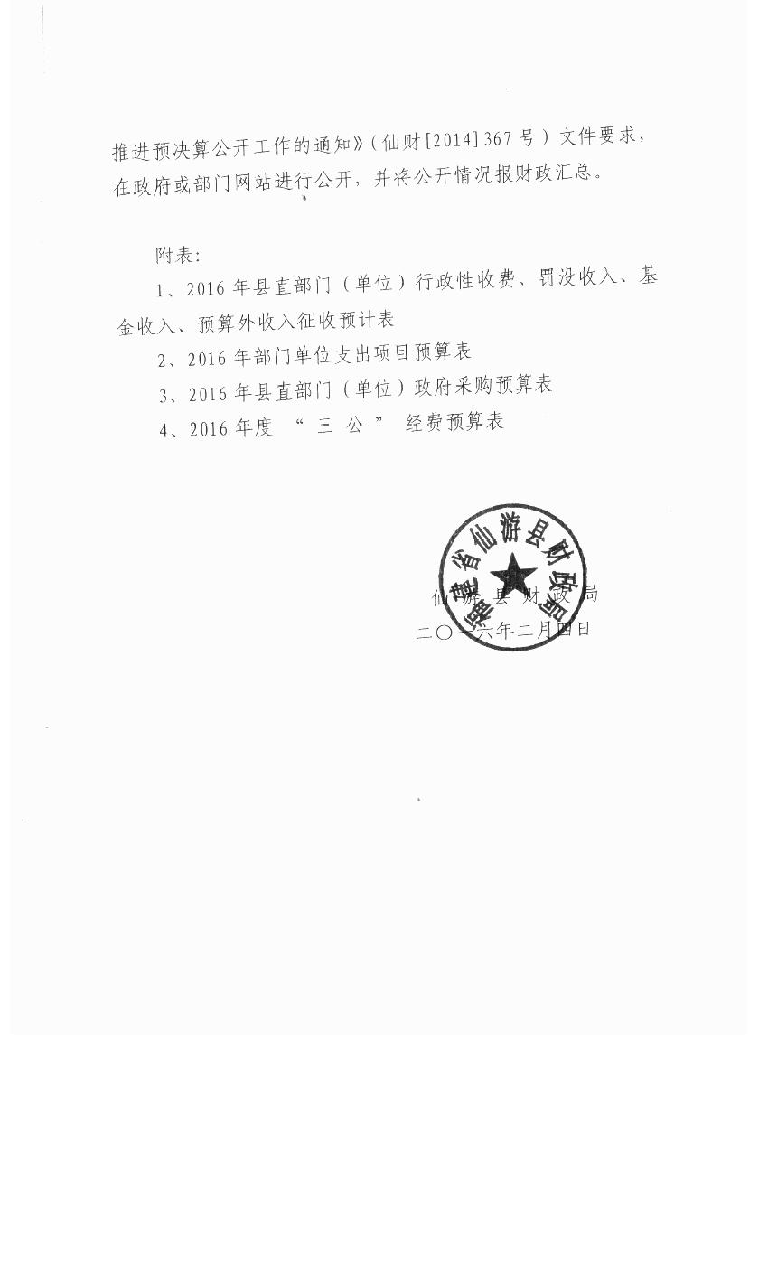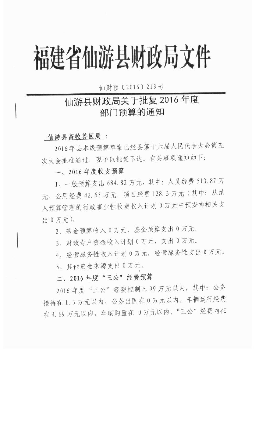 附件:《仙游县财政局关于批复2016年度部门预算的通知》(仙财预〔2016〕213号)