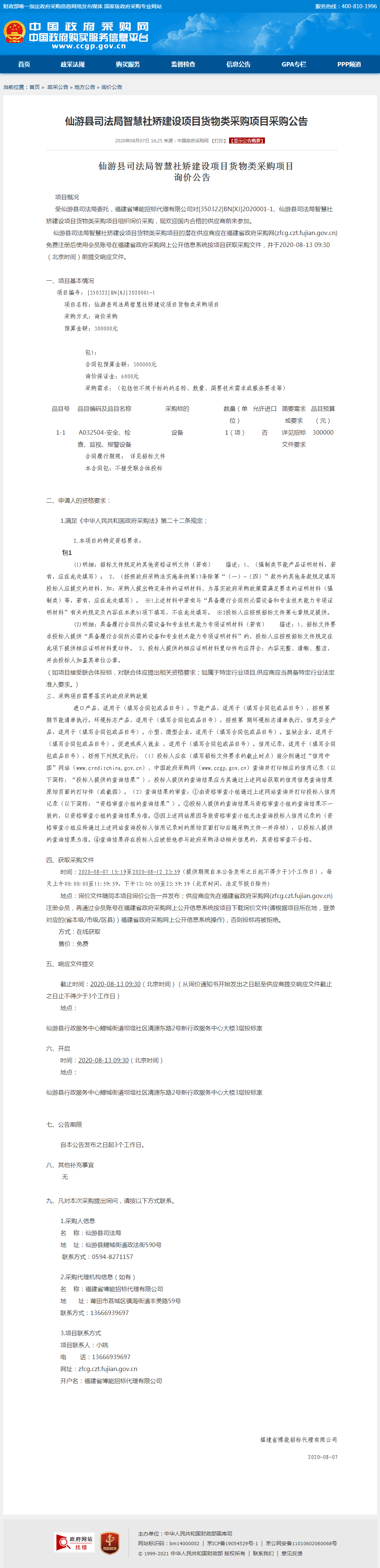 仙游县司法局智慧社矫建设项目货物类采购项目采购公告