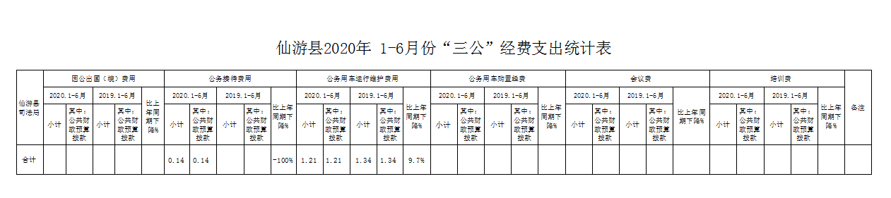仙游县司法局2020年 1-6月份“三公”经费支出统计表