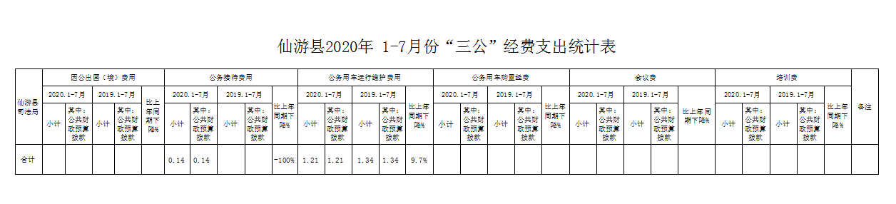仙游县司法局2020年 1-7月份“三公”经费支出统计表