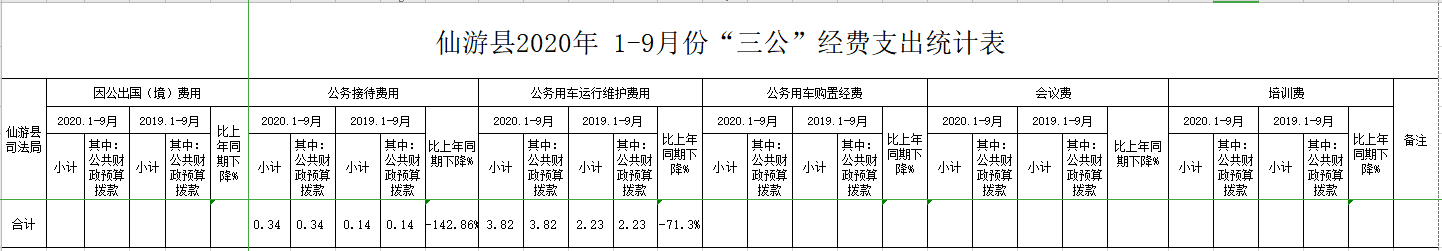 仙游县司法局2020年 1-9月份“三公”经费支出统计表
