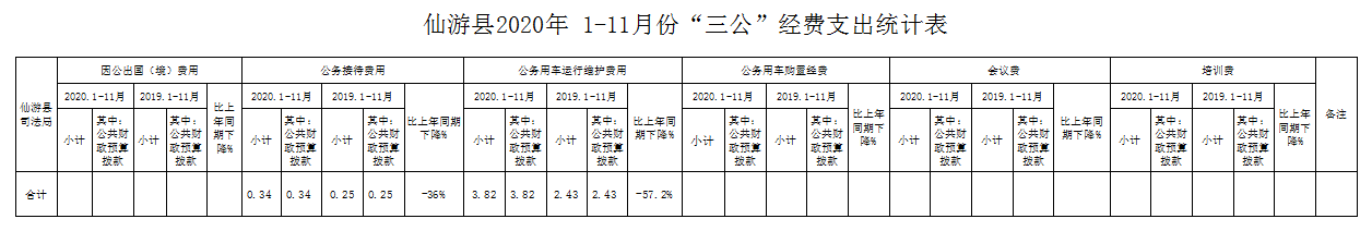 仙游县司法局2020年 1-11月份“三公”经费支出统计表