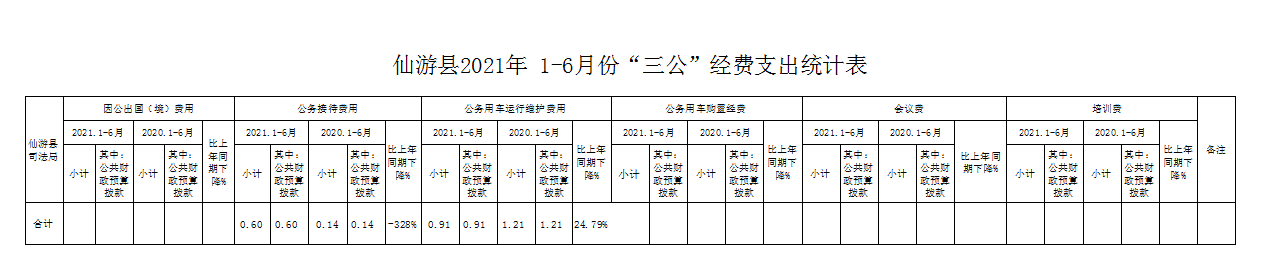 仙游县司法局2021年1-6月份“三公”经费支出统计表
