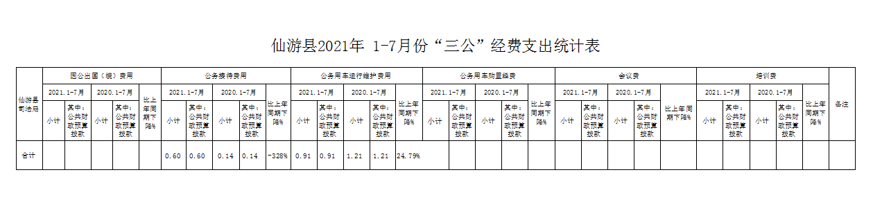 仙游县司法局2021年1-7月份“三公”经费支出统计表