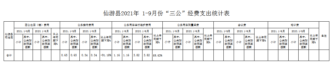 仙游县司法局2021年1-9月份“三公”经费支出统计表