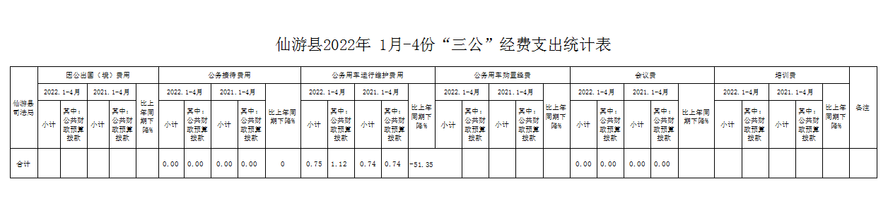 仙游县司法局2022年1-4月份“三公”经费支出统计表
