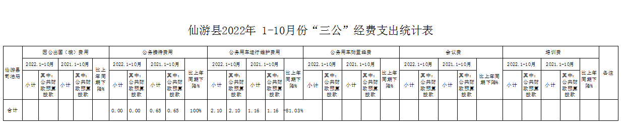 仙游县司法局2022年1-10月份“三公”经费支出统计表