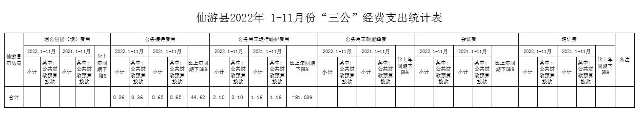 仙游县司法局2022年1-11月份“三公”经费支出统计表