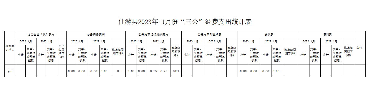 仙游县司法局2023年1月份“三公”经费支出统计表