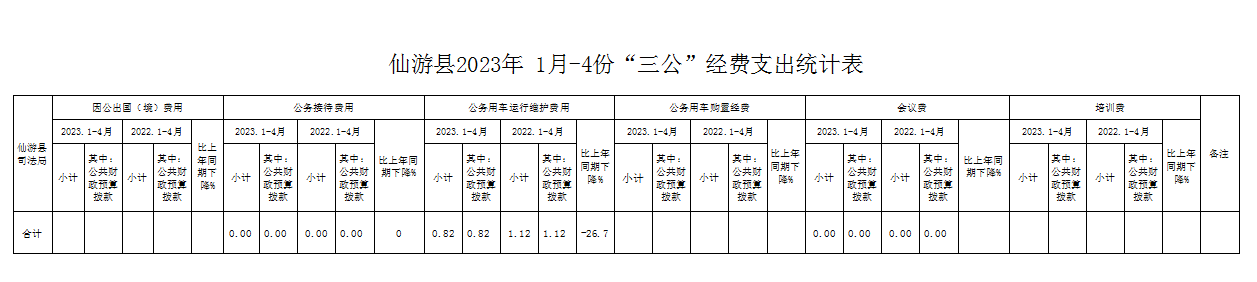仙游县司法局2023年1-4月份“三公”经费支出统计表