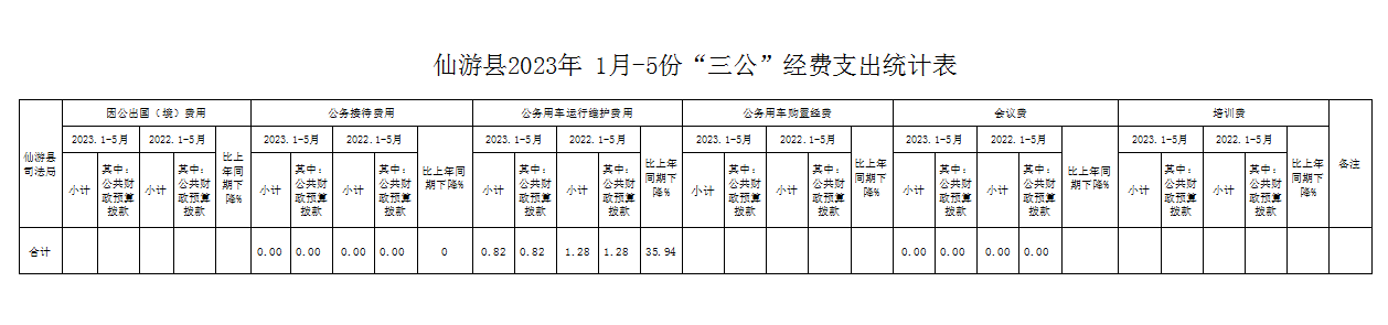 仙游县司法局2023年1-5月份“三公”经费支出统计表