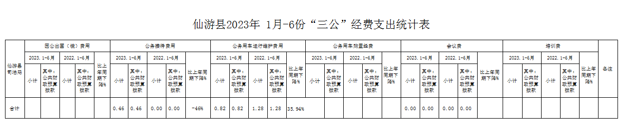 仙游县司法局2023年1-6月份“三公”经费支出统计表