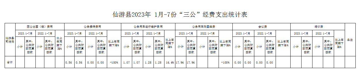 仙游县司法局2023年1-7月份“三公”经费支出统计表