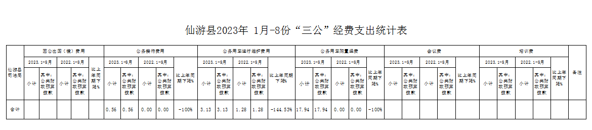 仙游县司法局2023年1-8月份“三公”经费支出统计表
