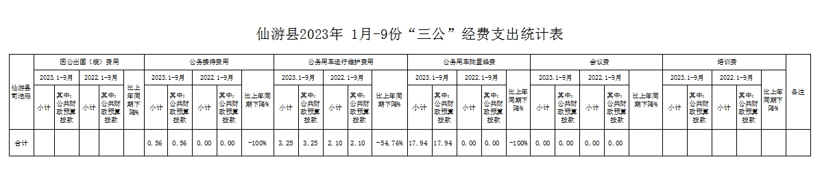 仙游县司法局2023年1-9月份“三公”经费支出情况表