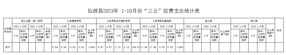 仙游县司法局2023年1-10月份“三公”经费支出情况表