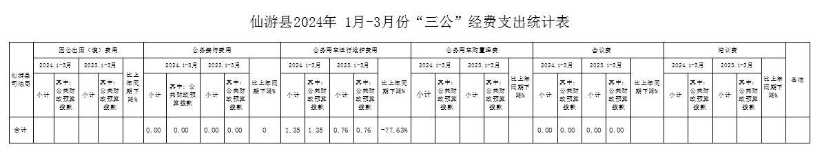 仙游县司法局2024年1-3月份“三公”经费支出情况表