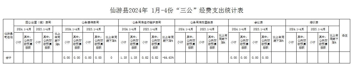 仙游县司法局2024年1-4月份“三公”经费支出情况表