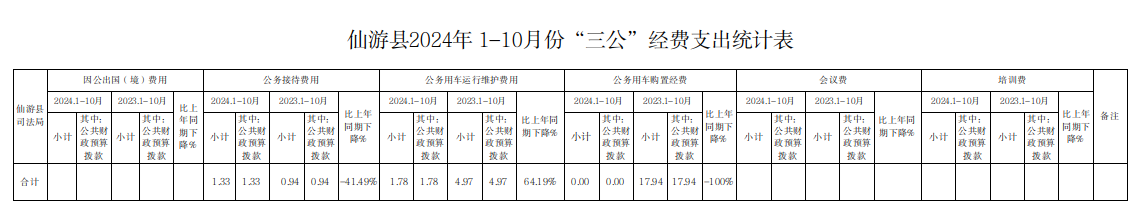 仙游县司法局2024年1-10月份“三公”经费支出情况表