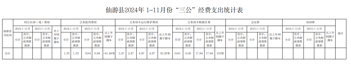 仙游县司法局2024年1-11月份“三公”经费支出情况表