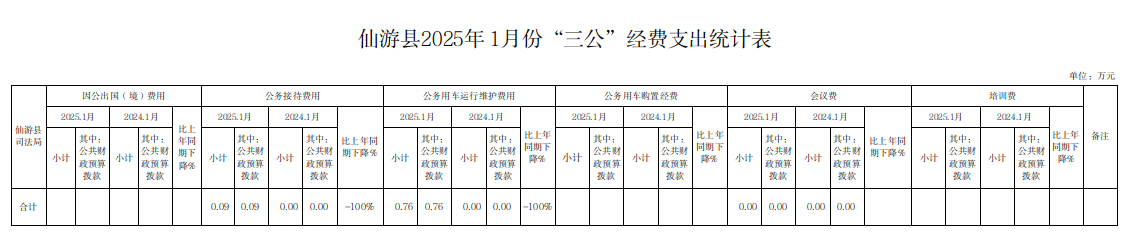 仙游县司法局2025年1月份“三公”经费支出统计表