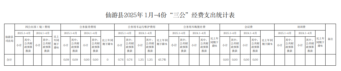 仙游县司法局2025年1-4月份“三公”经费支出情况表