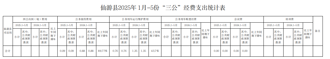 仙游县司法局2025年1-5月份“三公”经费支出情况表