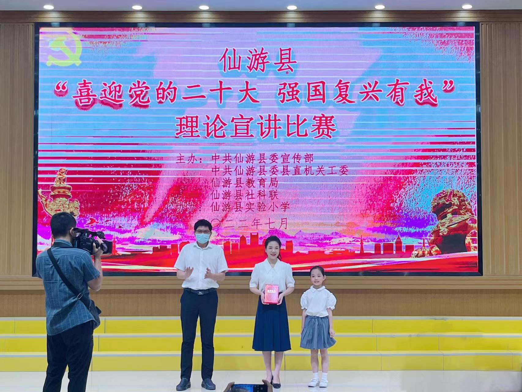 为迎接党的二十大胜利召开,仙游县委宣传部于7月20日举办仙游县“喜迎党的二十大 强国复兴有我”理论宣讲比赛。我局参赛选手吴晨星取得一等奖的好成绩。