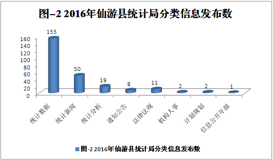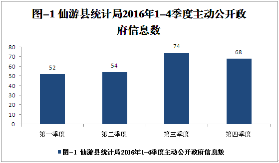 (一)加强信息主动公开工作。2016年,根据网站信息发布要求,我局向县政府数字办申请撤销《仙游县统计局》网站,在《仙游之窗》网站下改设仙游县统计局子栏目。同时,根据政府统计信息的内容,通过《仙游之窗》等网站,《仙游信息》、《仙游统计月报》、《仙游统计年鉴》、《统计公报》等刊物,县委县政府信息公开栏、局党务政务公开栏等栏目,局机关文件及数据库查阅、新闻媒体访谈等载体,主动及时地向社会进行信息公开。公开的信息内容和类别包括:统计局工作职责,领导分工,内设机构和职责、联系方式,公开指南,决策信息,应急管理,便民服务;国家、省、市有关统计的法律、行政法规、地方性法规、规章等规范性文件;行政执法依据、主体、程序、结果,投诉渠道;统计局年度工作计划、工作总结和重要会议主要内容;有关统计数据、统计分析、统计工作新闻,农业普查和其他政务信息,并做到公开的信息自形成或者变更之日起20个工作日内主动向社会公开的工作要求。