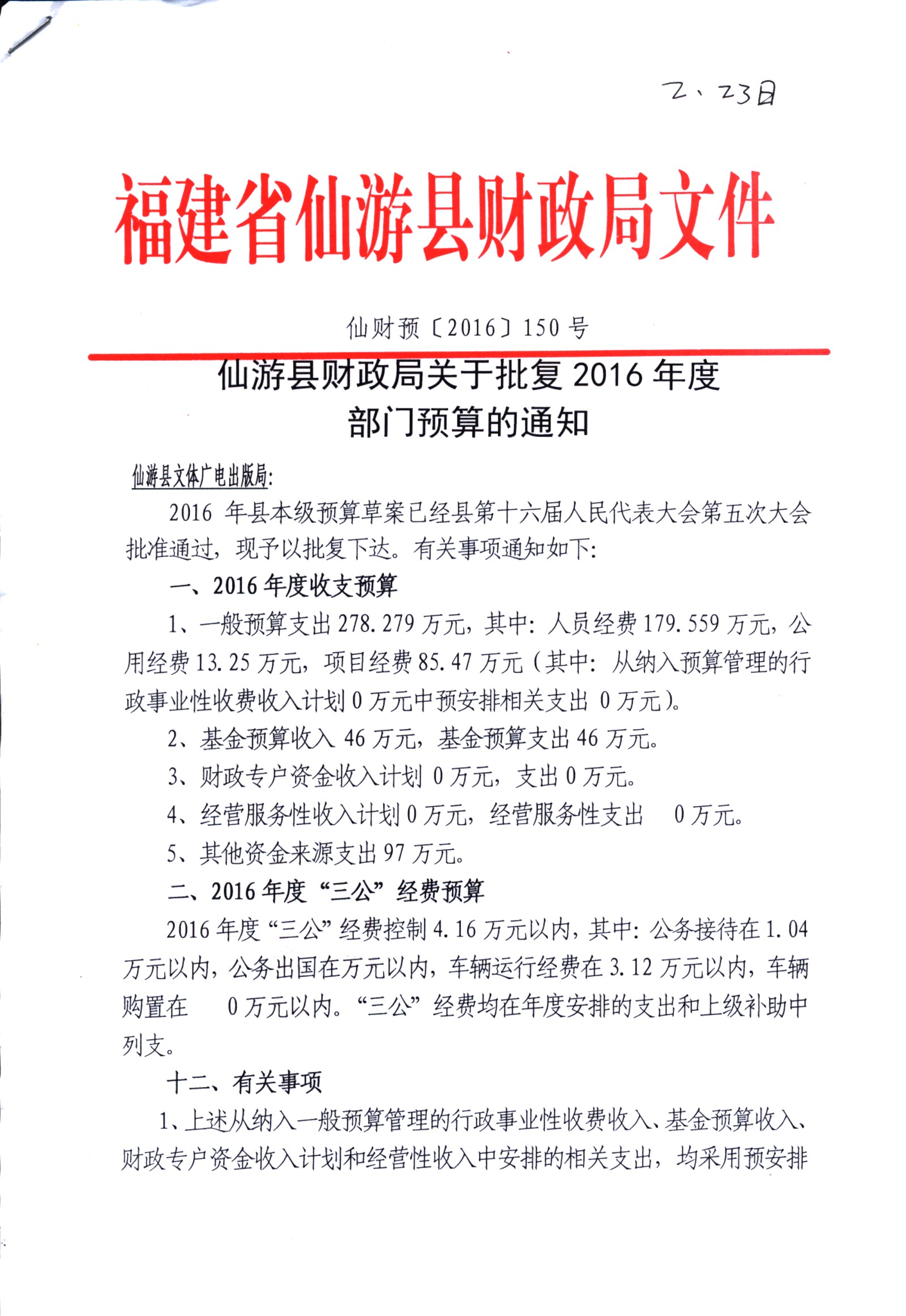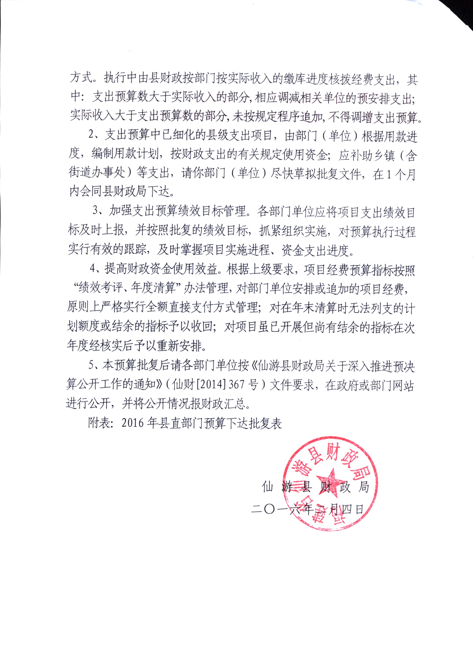 2016年部门预算经十六届人大五次会议审议通过,按照《仙游县财政局关于深入推进预决算公开工作的通知》要求,现将我单位2016年部门预算说明如下:
