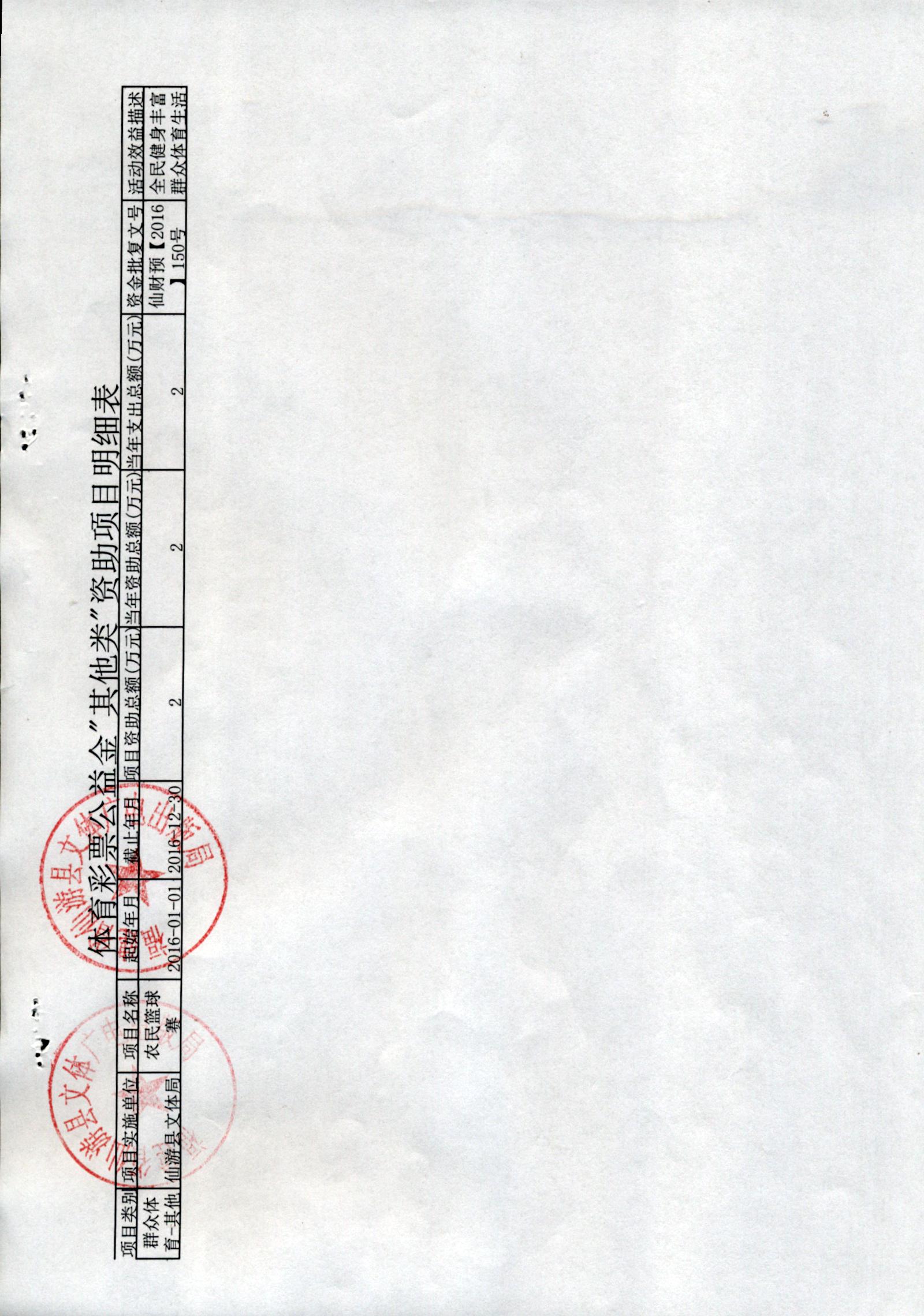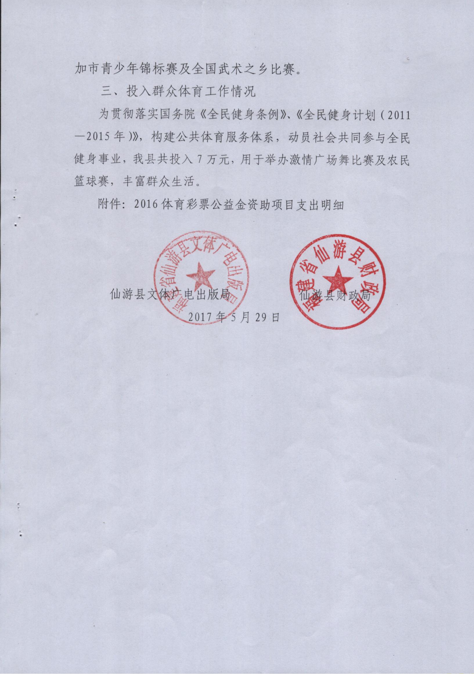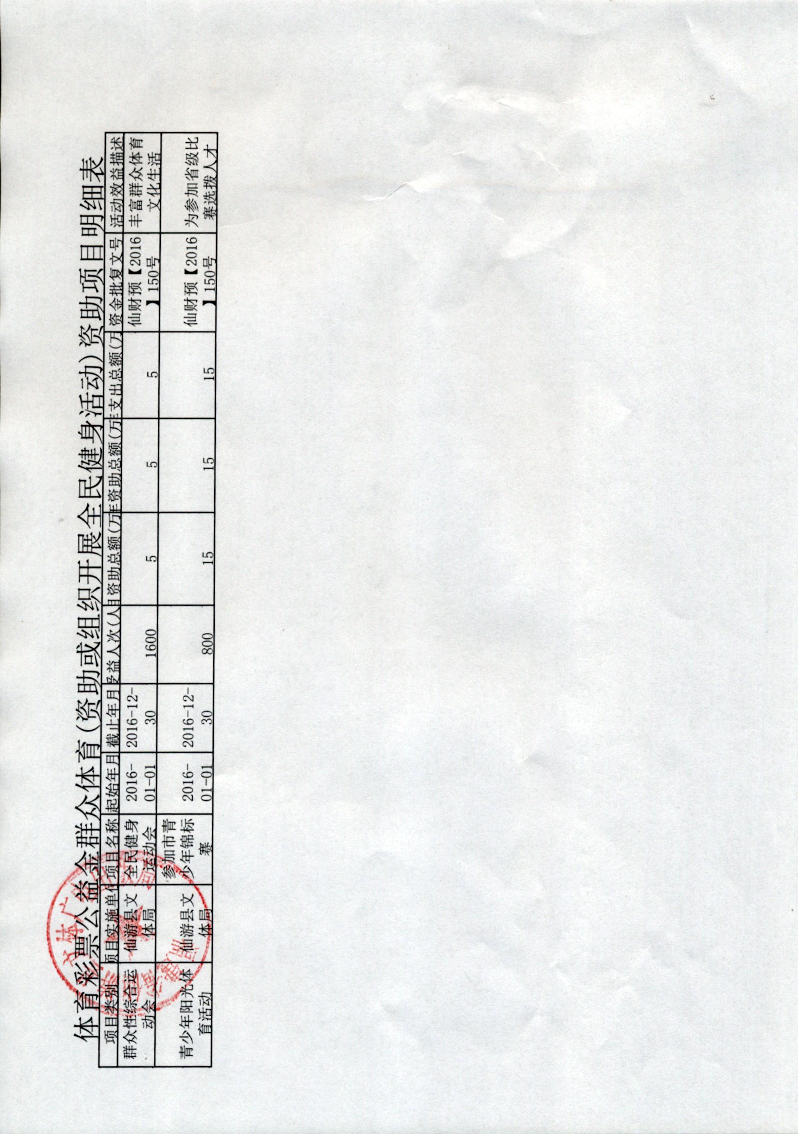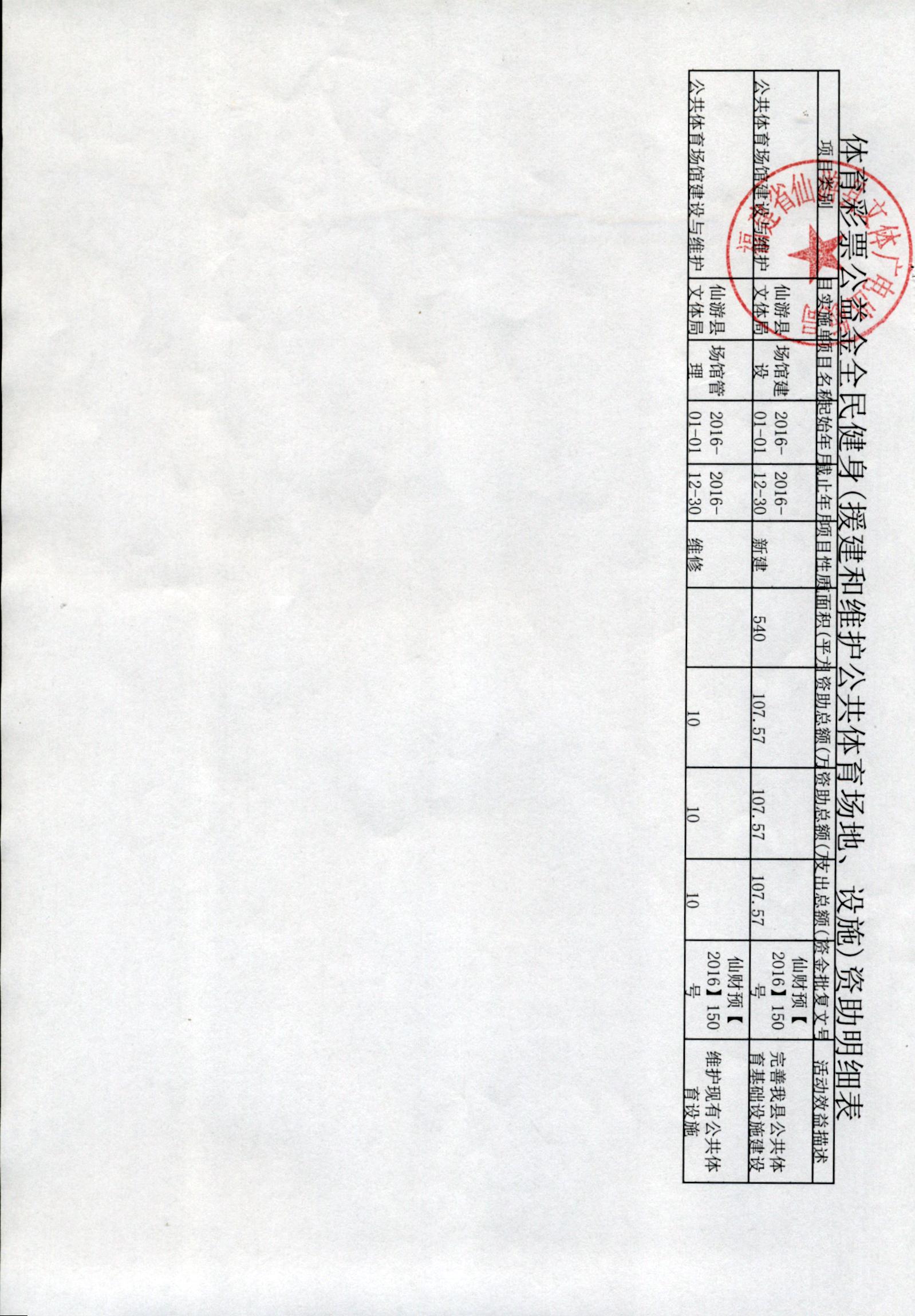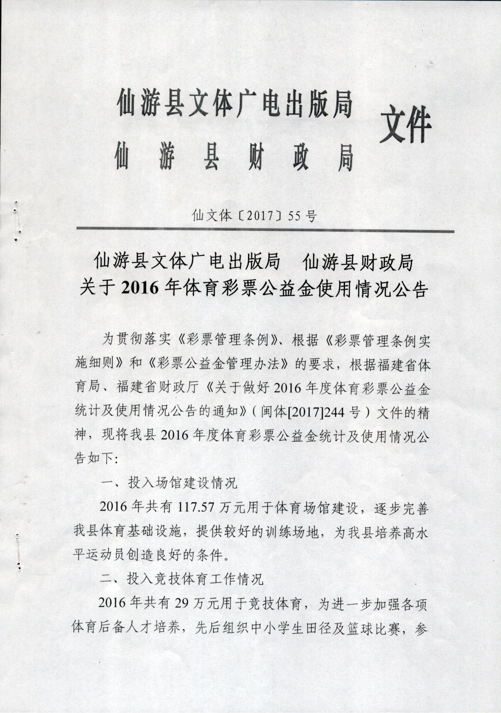仙游县文体广电出版局仙游县财政局关于2016年体育彩票公益金使用情况公告