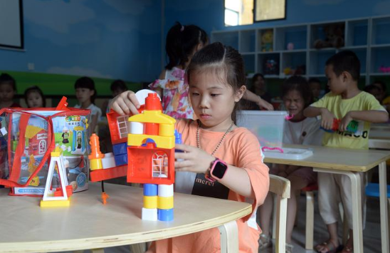 木兰社区“四点半学校”位于居委会一楼,走进其间,只见宽敞明亮、色彩温暖的教室可爱又温馨。这里不仅有丰富多样的益智玩具、课外书籍,还有各类儿童娱乐设施,让他们在这里度过一段段开心的傍晚时光(如图)。