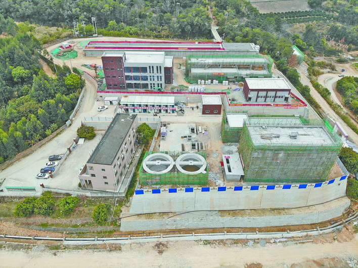 记者来到位于赖店镇古洋水库旁的主厂区施工现场看到,除了现场繁忙的建设景象,一座座雏形初具、外形“高大上”的厂房已然呈现在眼前。项目负责人林加伟告诉记者,当前厂区内主体建设已全部完成,施工团队在综合楼、配电间、水泵房等多个点位施工。“受疫情影响,前期部分工程量有所延误,复工复产后,我们科学计划,统筹安排,抢回了一些进度。现在多个班组同时进行,预计到今年底,整个项目可以实现试运行,调试成功后可以实现通水。”林加伟说。