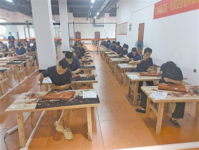 仪式上宣布福建省三福古典家具有限公司成功通过“福建省企业职业技能等级认定点”备案,并为其揭牌。揭牌后进行了工艺品雕刻工(三级)职业技能等级认定理论考核和技能等级评价考核工作(如图)。