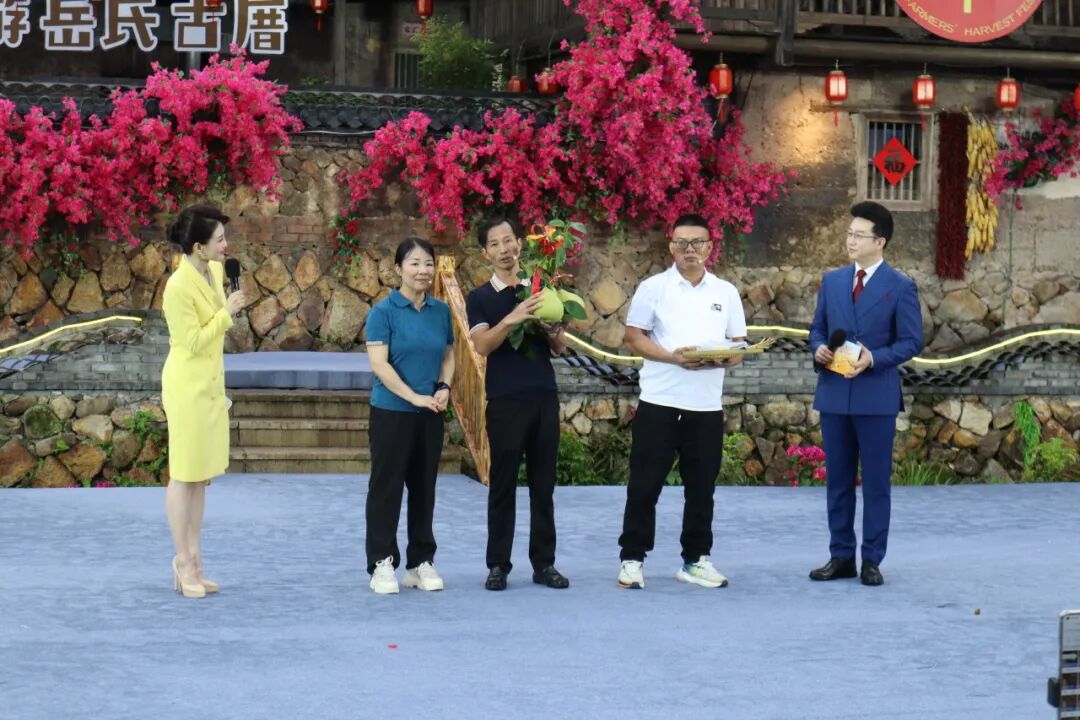 本届丰收节福建主会场巧妙融合了传统与现代元素:百年古厝为幕,金色稻田为台,枪楼巍巍守望着一方水土的丰收盛景。舞台中央,来自全省九地市和平潭的农民代表捧着沉甸甸的果实踏歌而行——漳州的荔枝红似火、安溪的茶香沁心脾、莆田的文旦柚压弯枝头。