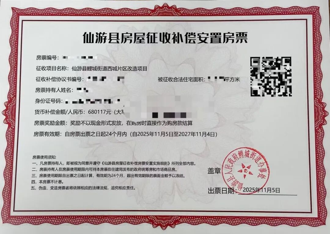 为满足群众多元化、个性化的安置需求,我县于2025年9月底正式《仙游县房屋征收补偿房票安置实施细则(试行)》,这项政策既完善了征收安置机制、提升群众安置满意度,又能拓宽了被征收群众的安置选择空间,同时也推动了房地产市场的良性循环,实现政府、群众、企业多方共赢。