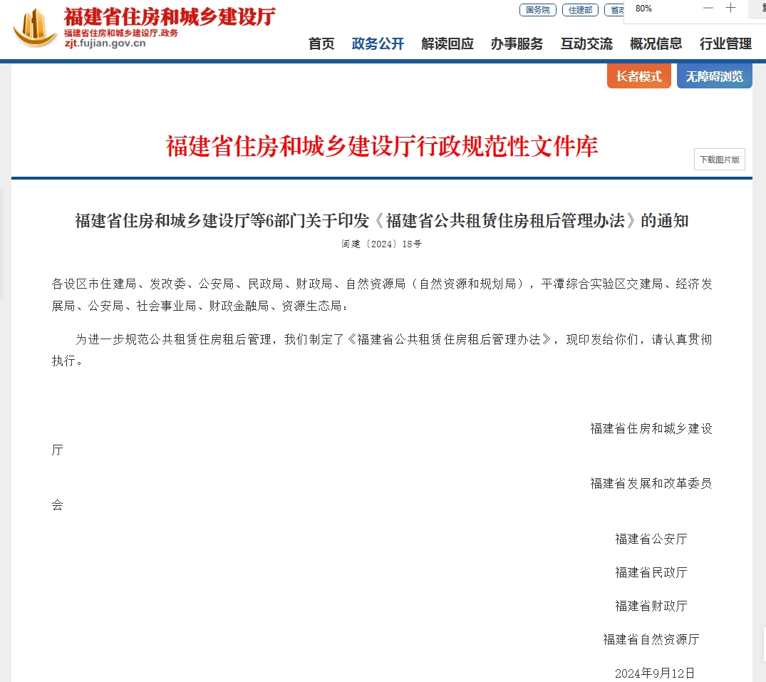 福建省住房和城乡建设厅等6部门关于印发《福建省公共租赁住房租后管理办法》的通知