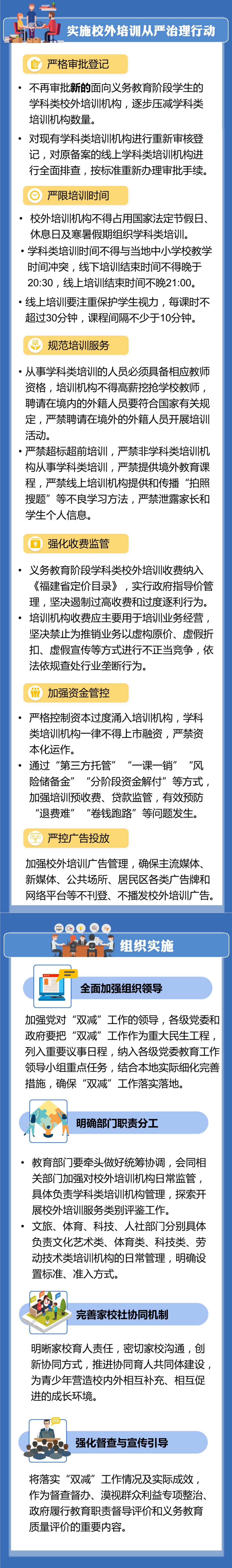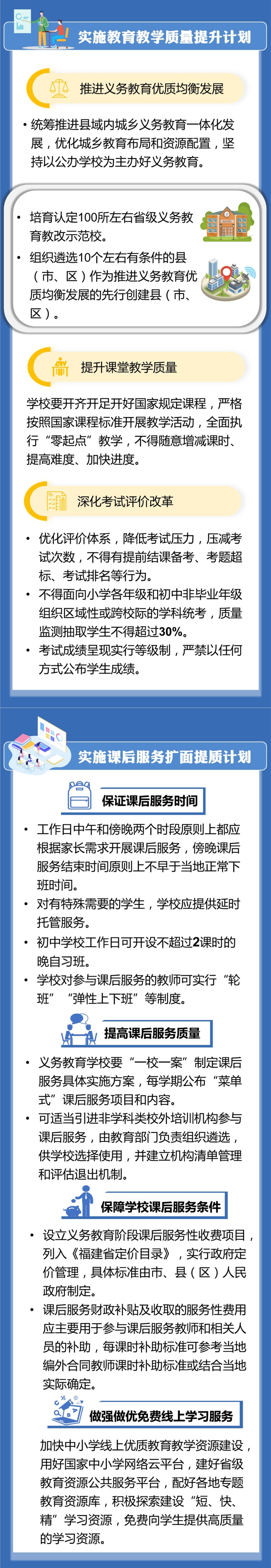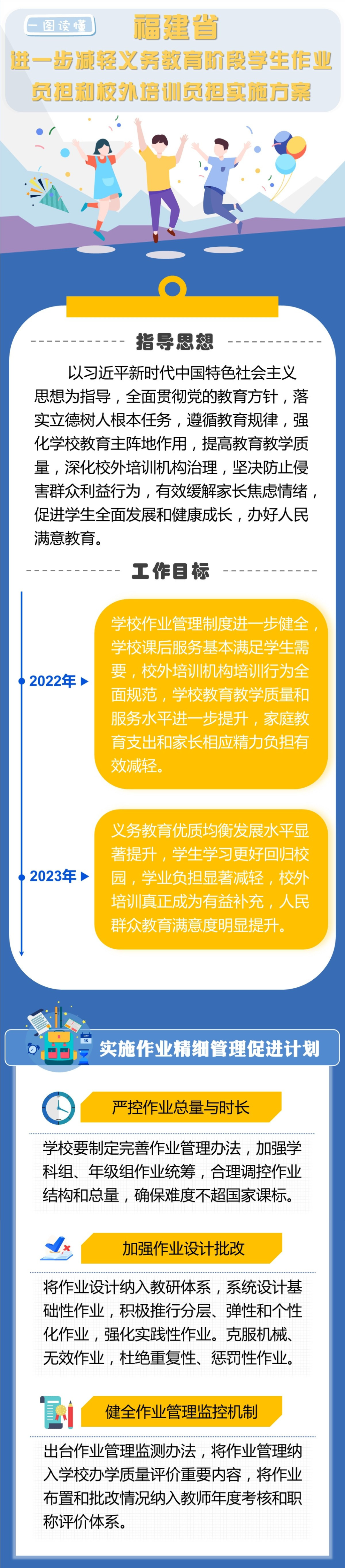 一图读懂 | 福建省进一步减轻义务教育阶段学生作业负担和校外培训负担实施方案