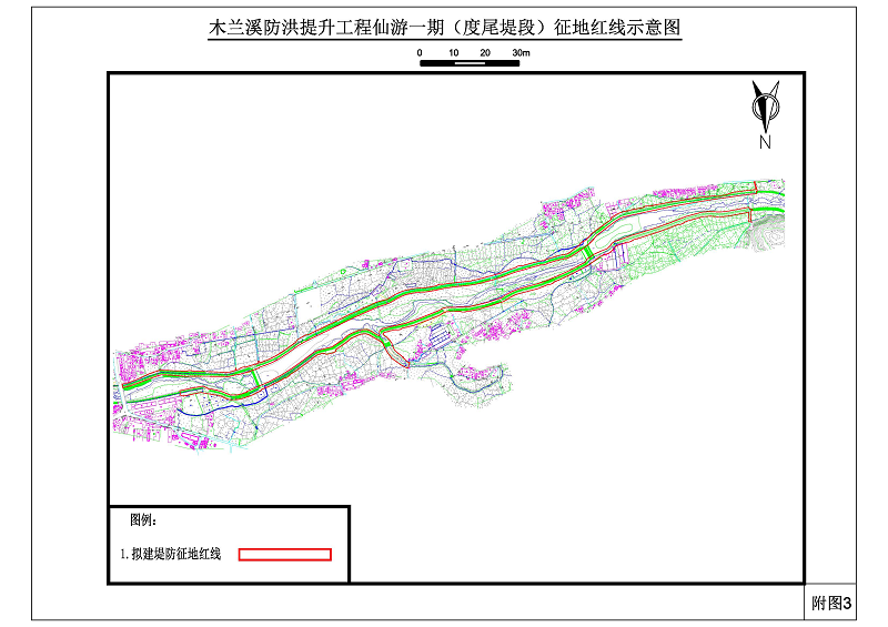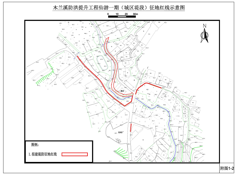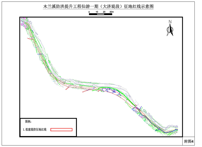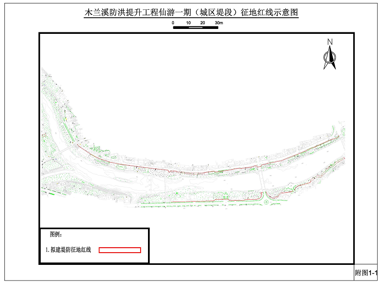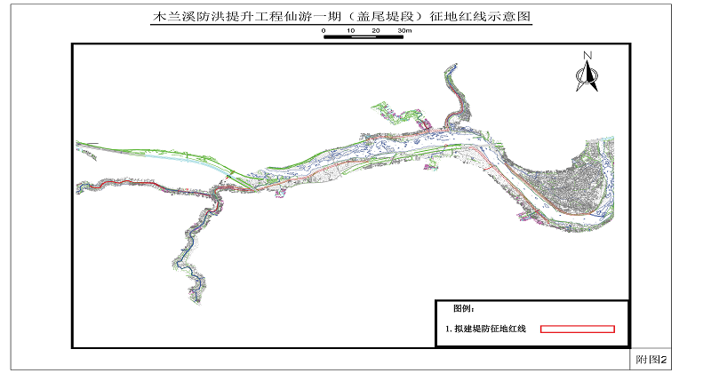 附件:木兰溪防洪提升工程仙游段一期堤段征地红线示意图