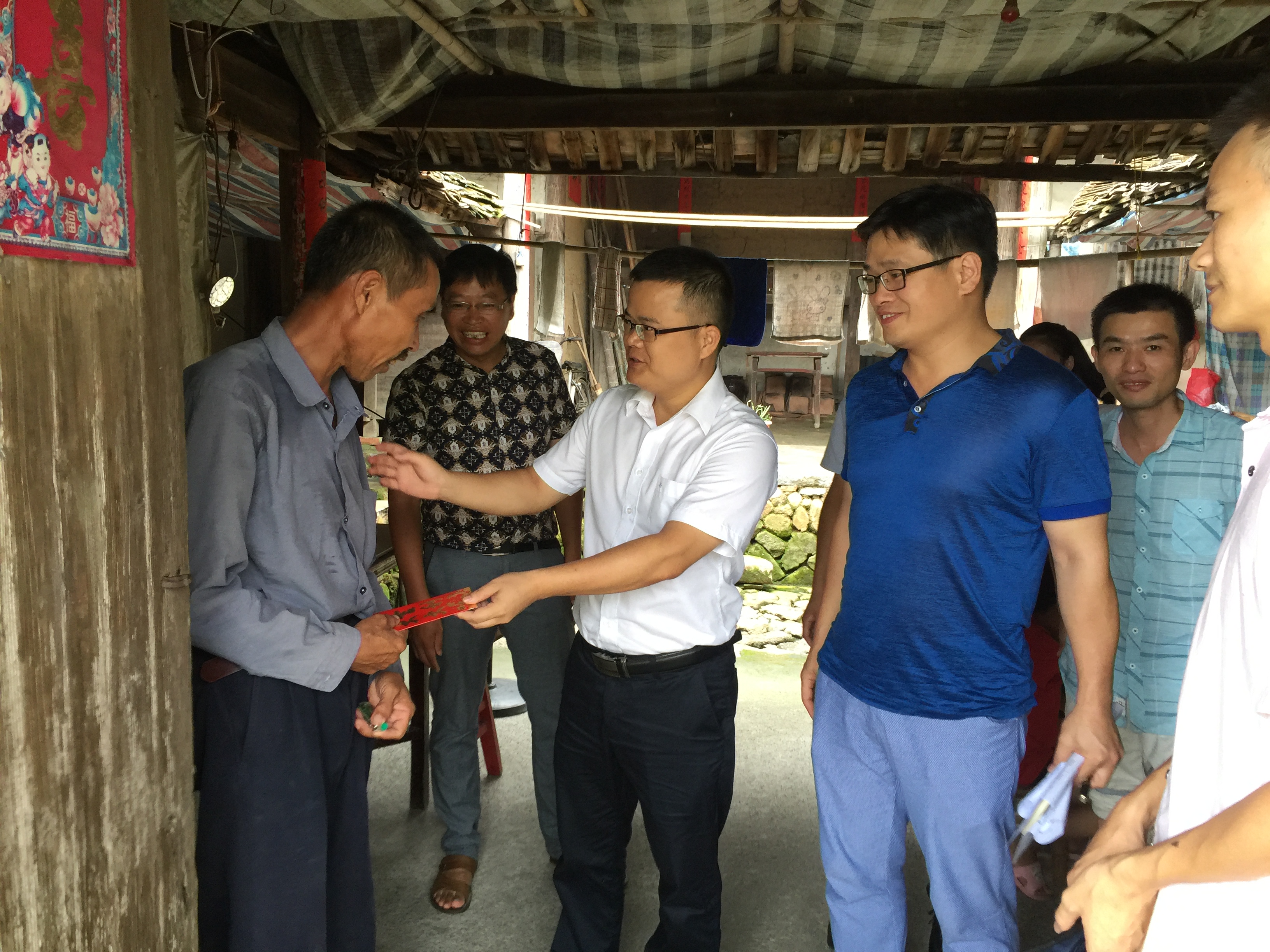 8月9日,县委常委邱忠生到我镇屏山村看望慰问贫困户,实地了解各项帮困措施的落实情况。镇长蔡俊宾、党委副书记蔡永杰等陪同。