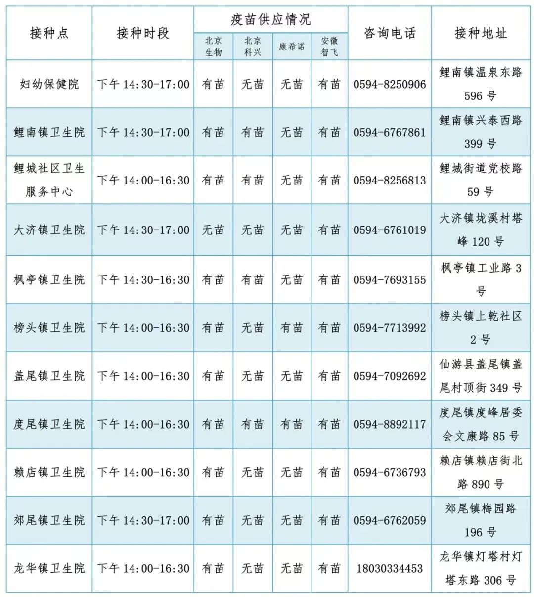 2022年11月28日仙游县开通全民新冠病毒疫苗接种点提醒如下: