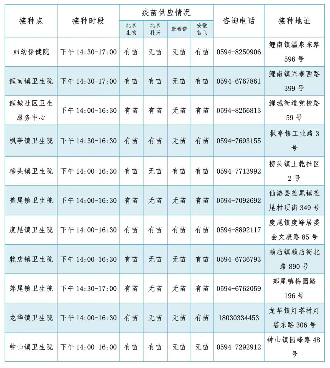 2022年12月2日仙游县开通全民新冠病毒疫苗接种点提醒如下: